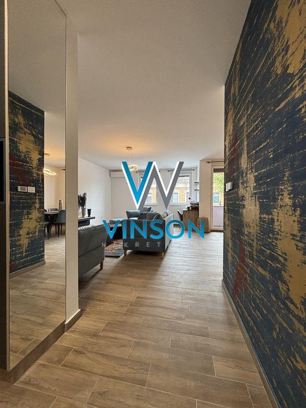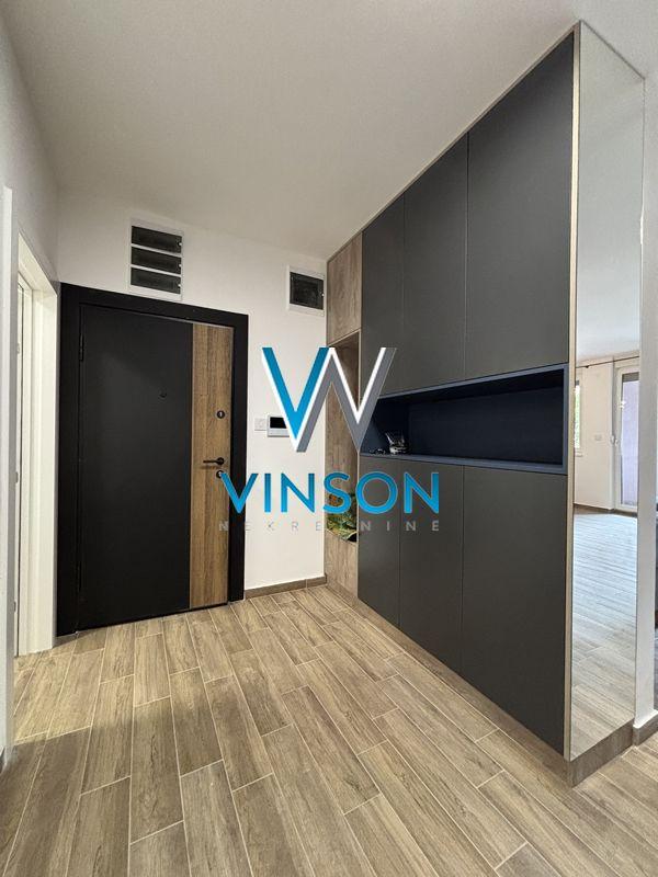 Petrovaradin. Izdvajamo iz ponude nov, neuseljavan, kompletno namešten, po strukturi dvoiposoban stan koji se nalazi na lepoj i mirnoj lokaciji za stanovanje. U neposrednoj blizini gradića, Petrovaradinske tvrđave i Beogradske kapije. Ovaj lep i enterijerski moderno uređen stambeni prostor čini komforan dnevni boravak sa trpezarijskim delom i izlazom na terasu, prostrana kuhinja, spavaći blok je degažmanom odvojen od dnevnog i čine ga dve spavaće sobe, garderober, toalet i kupatilo. Podno grejanje, klimatizovan. Dvostrano orijentisan. Pozicioniran na visokom prizemlju. Zajednička krovna terasa koju mogu da koriste stanari zgarde. Parking mesto ispred zgrade. Odmah useljiv.(Vinson nekretnine, Novi Sad, Reg. br. posrednika: 1085)