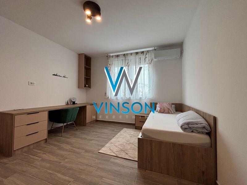 Petrovaradin. Izdvajamo iz ponude nov, neuseljavan, kompletno namešten, po strukturi dvoiposoban stan koji se nalazi na lepoj i mirnoj lokaciji za stanovanje. U neposrednoj blizini gradića, Petrovaradinske tvrđave i Beogradske kapije. Ovaj lep i enterijerski moderno uređen stambeni prostor čini komforan dnevni boravak sa trpezarijskim delom i izlazom na terasu, prostrana kuhinja sa ostavom, spavaći blok je degažmanom odvojen od dnevnog i čine ga dve spavaće sobe, garderober, toalet i kupatilo. Podno grejanje, klimatizovan. Dvostrano orijentisan. Pozicioniran na I spratu. Zajednička krovna terasa koju mogu da koriste stanari zgarde. Parking mesto ispred zgrade. Odmah useljv.(Vinson nekretnine, Novi Sad, Reg. br. posrednika: 1085)