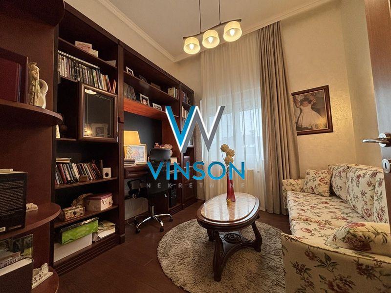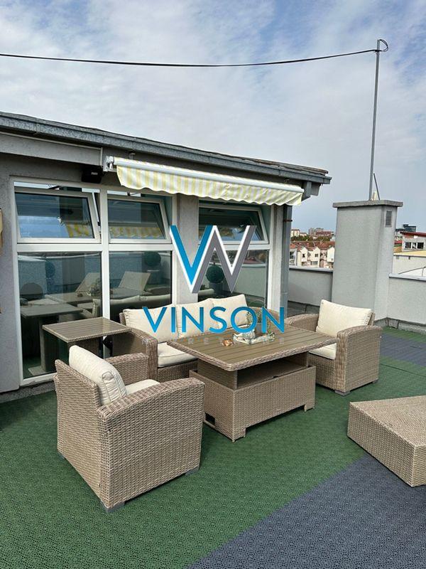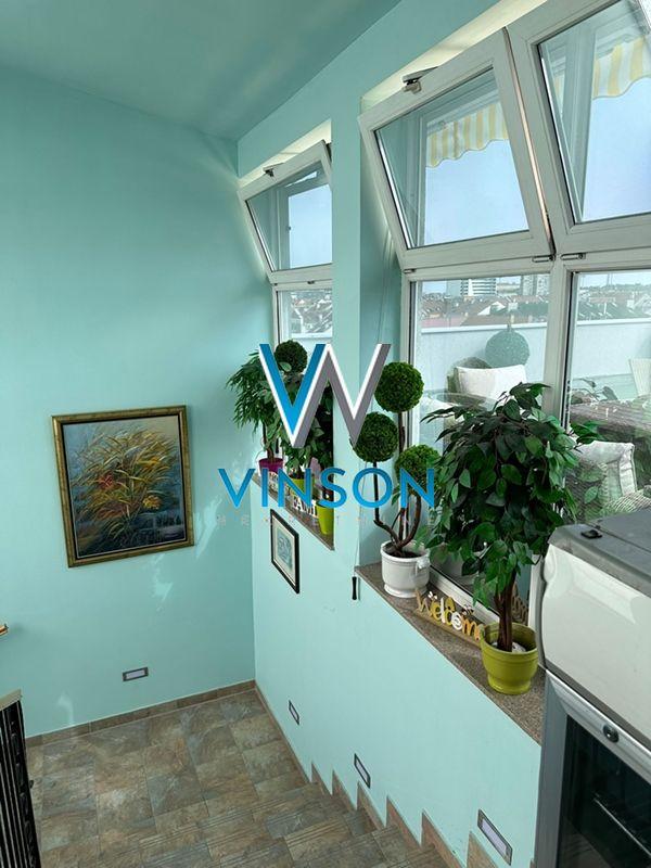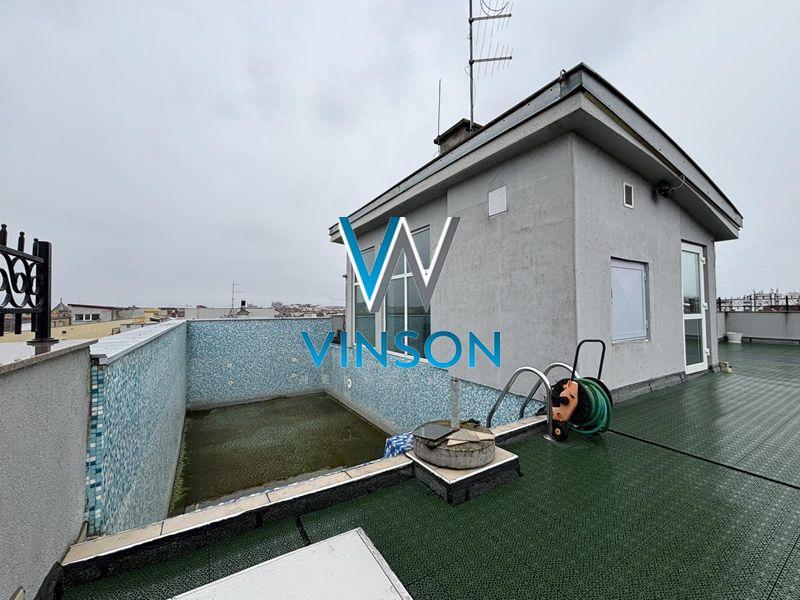 Novi Sad, Grbavica, ulica Miše Dimitrijevića. Izdvajamo iz ponude luksuzan, po strukturi petosoban penthouse stan u neposrednoj blizini Limanske pijace, Osnovne škole " Sonja Marinković", TC Promenada, fakulteta. Ovaj lep i svetao stambeni prostor izgrađen je u zgradi novije gradnje sa lifom koji vodi direktno u stan koji se sastoji od donje etaže i krovne terase sa bazenom. Donju etažu čini prostran i svetao dnevni boravak sa trpezarijom (visina plafona 4m), kuhinja sa ostavom koja ima izlaz na manju terasu, četiri spavaće sobe, dva kupatila, toalet, vešeraj i tri terase. Stan je opremljen centralnim usisnim sistemom. Sve spavaće sobe su klimatizovane. Gornju etažu čini krovna terasa na koju se dolazi stepenicama iz stana. Terasa je površine oko 150m2 i ima veliki bazen dimenzija 8x4 sa opremom za filtiranje vode. Mogućnost kupovine garažnog parking mesta. Video nadzor. Uknjižen. Useljiv po dogovoru. (Vinson nekretnine, Novi Sad, Reg. br. posrednika: 1085)
