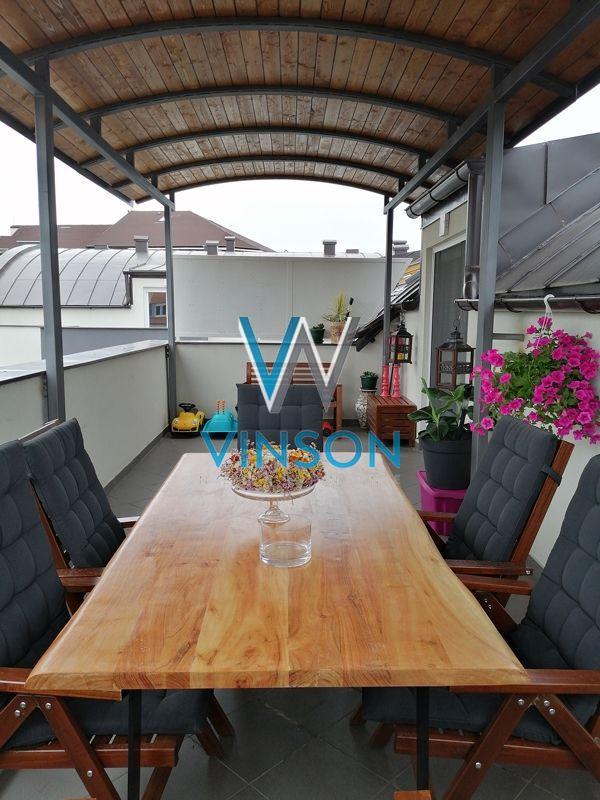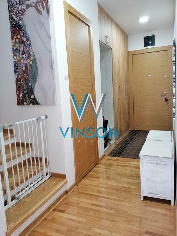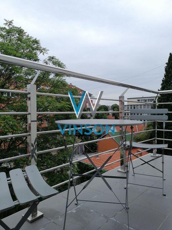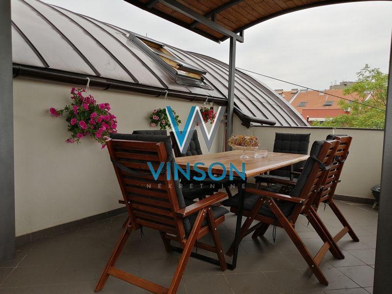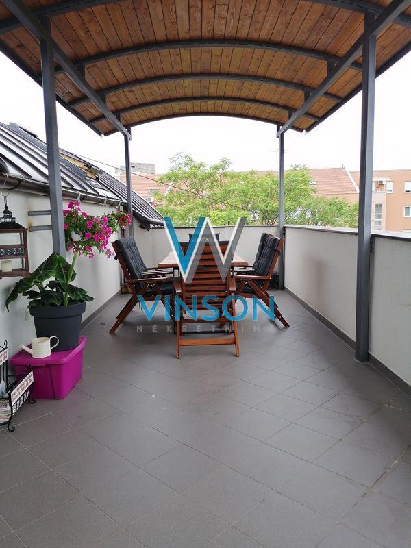 Novi Sad, Socijalno, ulica Hilandarska. Nov, dvorišno orijentisan troiposoban dupleks stan na III spratu nove zgrade visokog kvaliteta gradnje. Hilandarska ulica je smeštena u urbanoj zoni grada, u neposrednoj blizini dve poznate osnovne škole, vrtića, brojnih ugostiteljskih objekata, pešačke zone, Srpskog narodnog pozorišta i Bulevara oslobođenja... Ovaj komforan dupleks u skandinavskom stilu enterijerski je kompletno opremljen modernim nameštajem i savremenom belom tehnikom. Projektovan po najsavremenijim principima organizacije prostora. Dnevna i spavaća zona su potpuno razdvojene u dve etaže. Donju etažu predstavlja otvoren, veoma svetao i komforan prostor sa dosta staklenih površina koji dele dnevni boravak sa izlazom na terasu, trpezarija i kuhinja; toalet se nalazi u ulaznom predsoblju. Gornju etažu funkcionalnog rasporeda čini spavaći blok sa tri sobe, kupatilo sa ležećom kadom i velika terasa sa terasnom garniturom i panoramskim pogledom na grad. U suterenu zgrade ostava veličine 6 m2 i parking mesto dovoljno veliko za dva automobila. Idealan za porodično stanovanje. Useljiv od 01.11.2025. godine. (Vinson nekretnine, Novi Sad, Reg. br. posrednika: 1085)