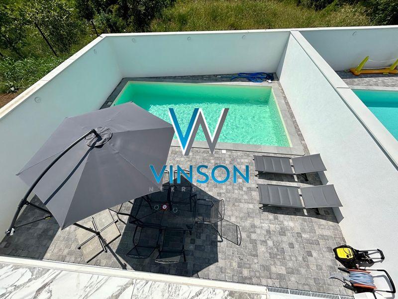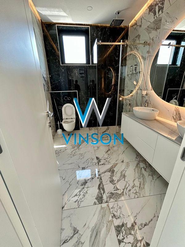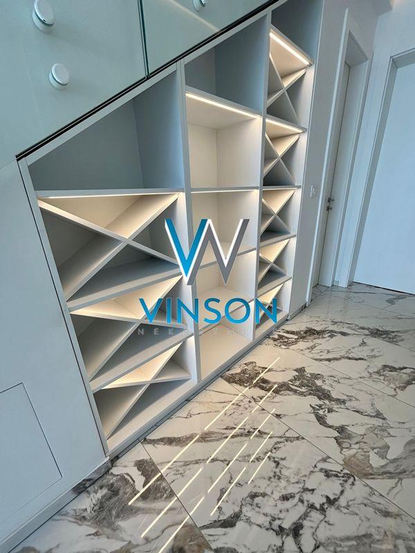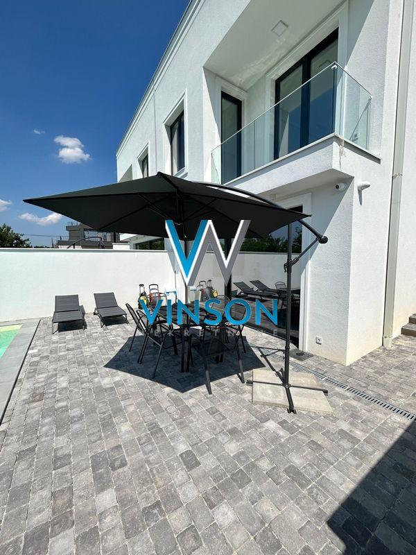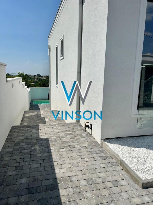 Sremska Kamenica. Izdvajamo iz ponude luksuznu nekretninu jedinstvenih karakteristika i visokog kvaliteta opreme i gradnje. Četvorosobna, kompletno nameštena kuća. Ovaj stambeni prostor, građen po principu smarthome sistema, poseduje dve etaže. Prvu etažu predstavlja lep i svetao dnevni boravak sa trpezarijom, uvučena kuhinja i kupatilo sa tuš kabinom. Iz dnevnog boravka se izlazi na prostranu terasu i dvorište sa bazenom. Druga etaža je rezervisana za spavaću zonu i nju čine tri spavaće sobe i kupatilo sa tuš kabinom. Na krovu se nalazi terasa, koji se moze pretvoriti u letnji djardino sa pogledom na grad. Trenutno je na istoj postavljen behaton. Podno grejanje u celoj kući i split sistem u svakoj prostoriji (grejanje i hlađenje). Video nadzor i alarm. Useljiva odmah. (Vinson nekretnine, Novi Sad, Reg. br. posrednika: 1085)