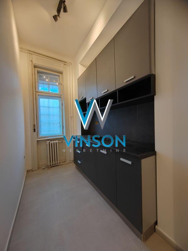 Novi Sad, Centar (Spens), ulica Sremska. Izdavanje veoma komfornog, nenameštenog, kompletno renoviranog dvosobnog salonskog stana u svrhe poslovnog prostora. Idealna lokacija za poslovanje - neposredna blizina svih značajnih poslovnih zona, Osnovnog suda, Katastra, Spensa, Pupinove palate i pešačke zone... Ovaj prostor čine dve kancelarije, opremljena kuhinja i kupatilo. Bez terase. Funkcionalan raspored - u svaku prostoriju se ulazi iz hodnika. Visoki plafoni. Ulično orijentisan. Pozicioniran na I spratu starije zgrade bez lifta. Ugovor o zakupu se sklapa sa fizičkim licem. Potreban sigurnosni depozit u visini zakupnine. Useljiv od 01.06.2026.godine. (Vinson nekretnine, Novi Sad, Reg. br. posrednika: 1085)
